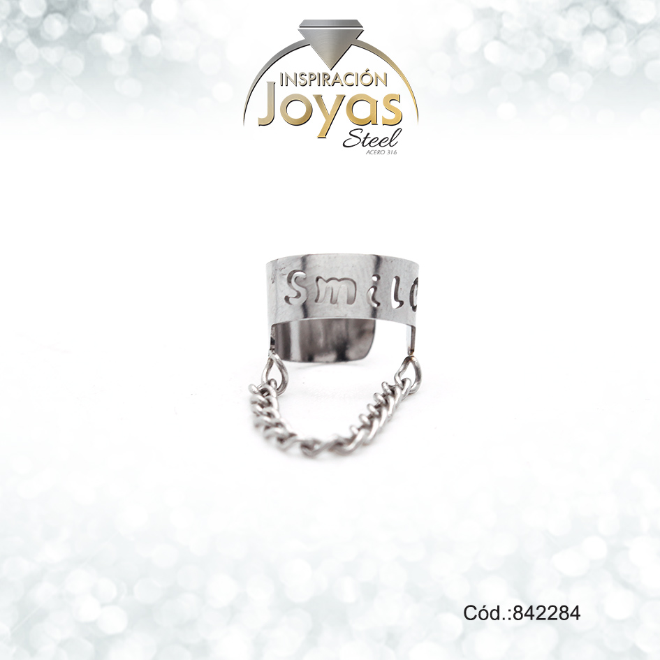 Earcuff Acero Plateado «Smile» Con Cadeneta – 842284