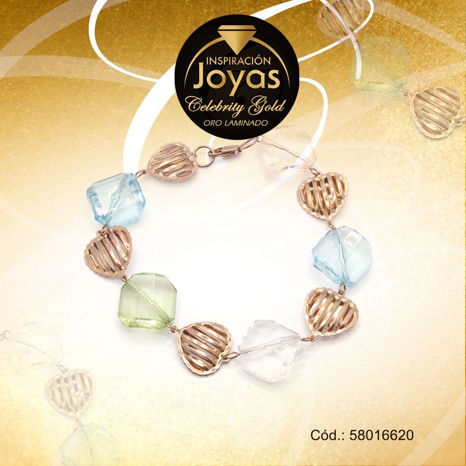 Pulsera Celebrity Gold Aleación Piedra Dorado Rombo Multi Color – 58016620