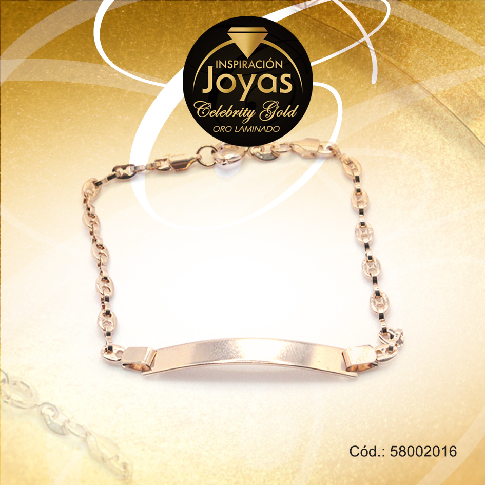 Pulsera Celebrity Gold Caballero Con Placa Dorado Rectángulo – 58002016