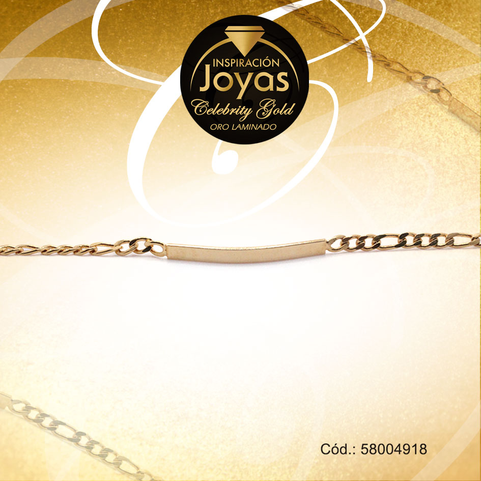 Pulsera Celebrity Gold Caballero Con Placa Dorado Rectángulo – 58004918