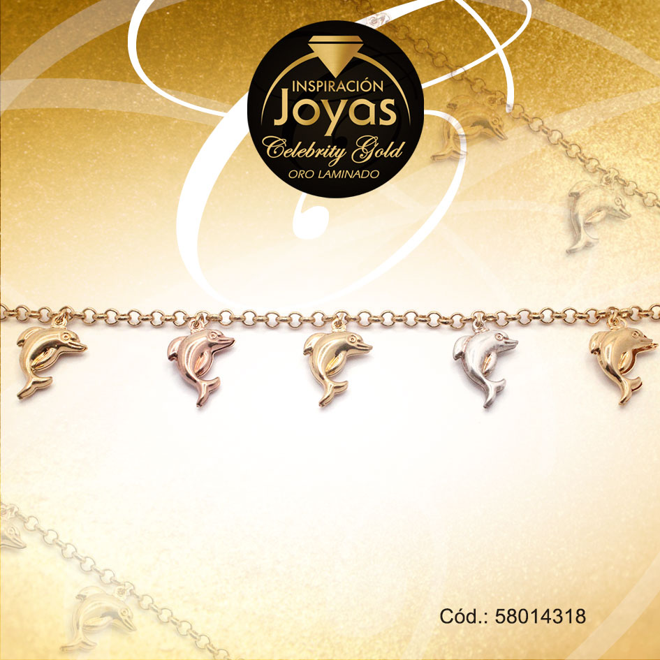 Pulsera Celebrity Gold Variado Colgante 3 Tonos Delfines – 58014318