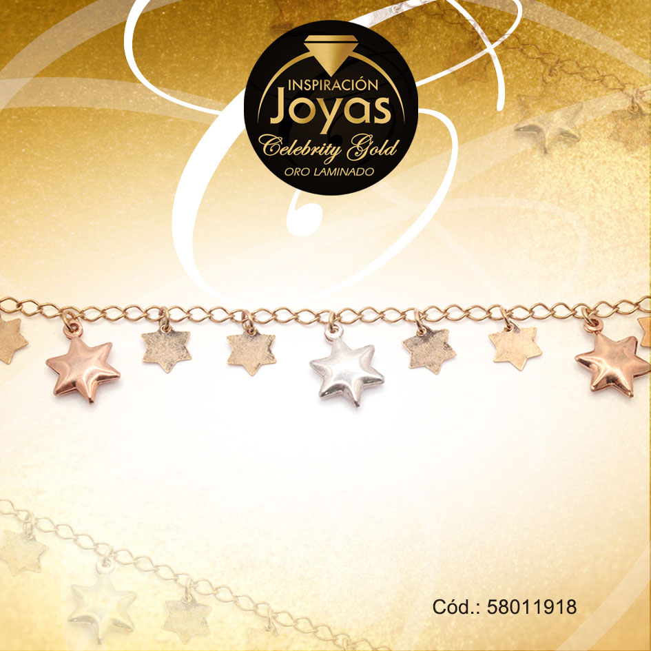 Pulsera Celebrity Gold Variado Colgante 3 Tonos Estrella – 58011918