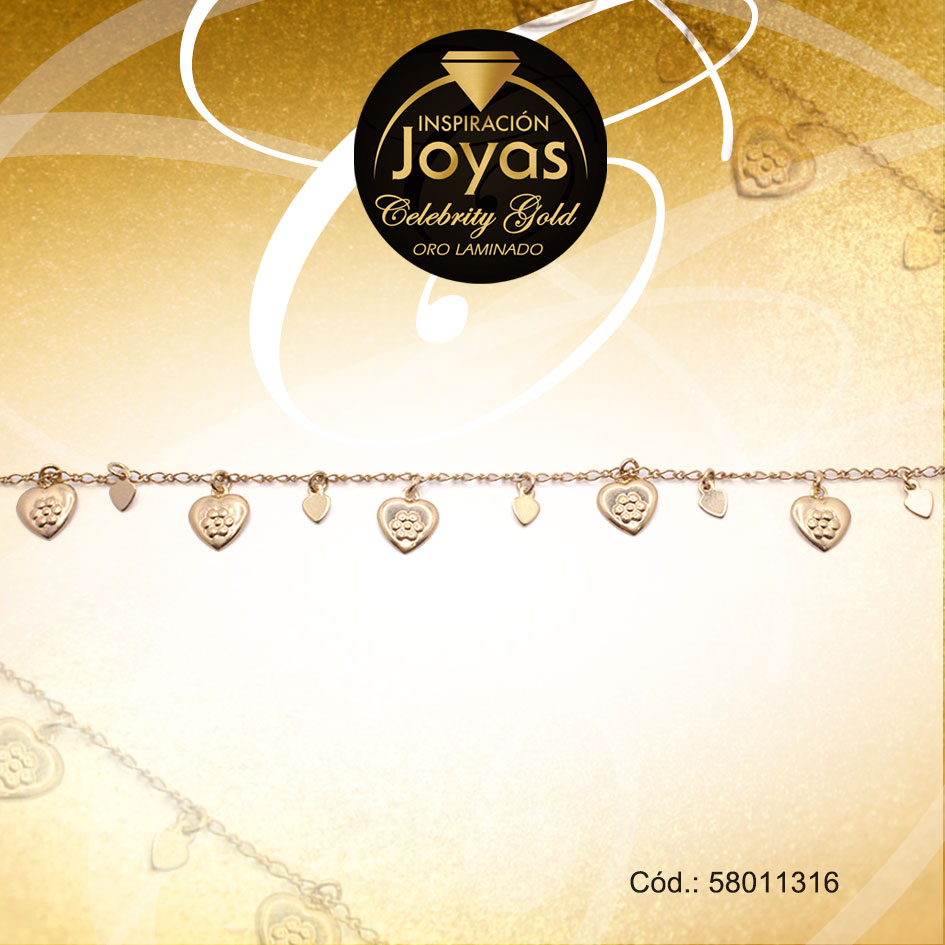 Pulsera Celebrity Gold Variado Colgante Dorado Corazón – 58011316