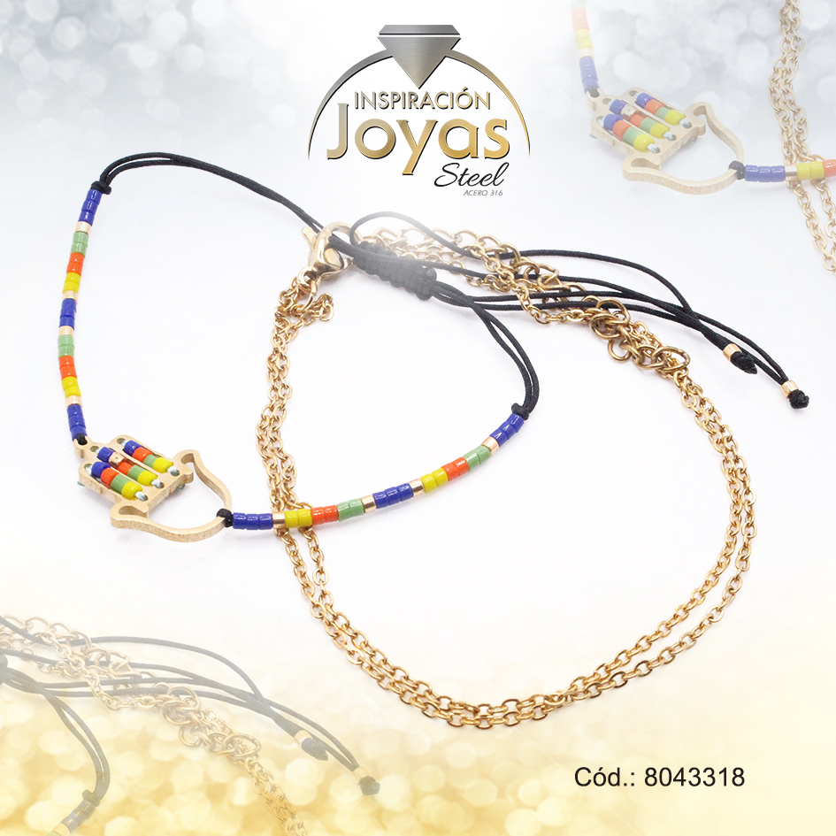 Pulsera de Acero Ajustable Hilo Dorado Mano de Fátima Multi Color – 8043318