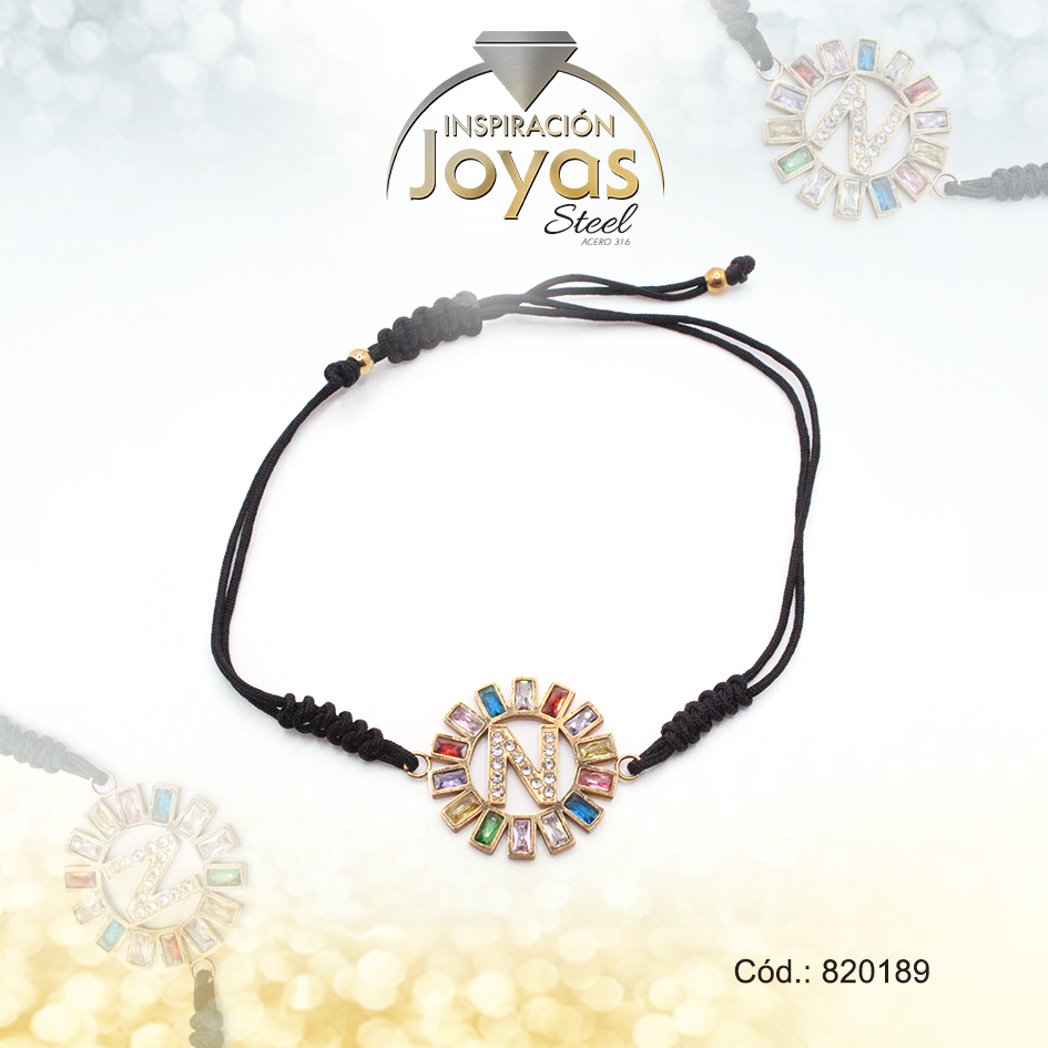 Pulsera de Acero Ajustable Hilo Negro Letra N Multi Color – 820189