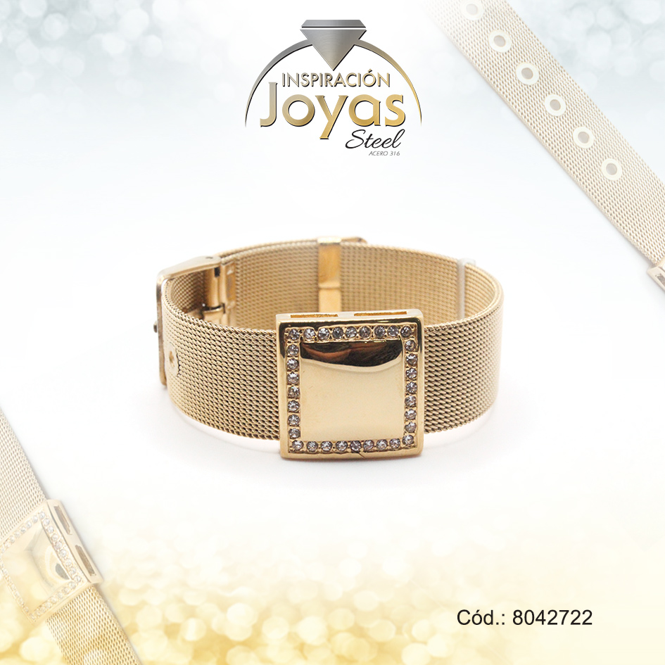 Pulsera de Acero Aleación Malla Dorado Cuadrado Medida 22 cm – 8042722