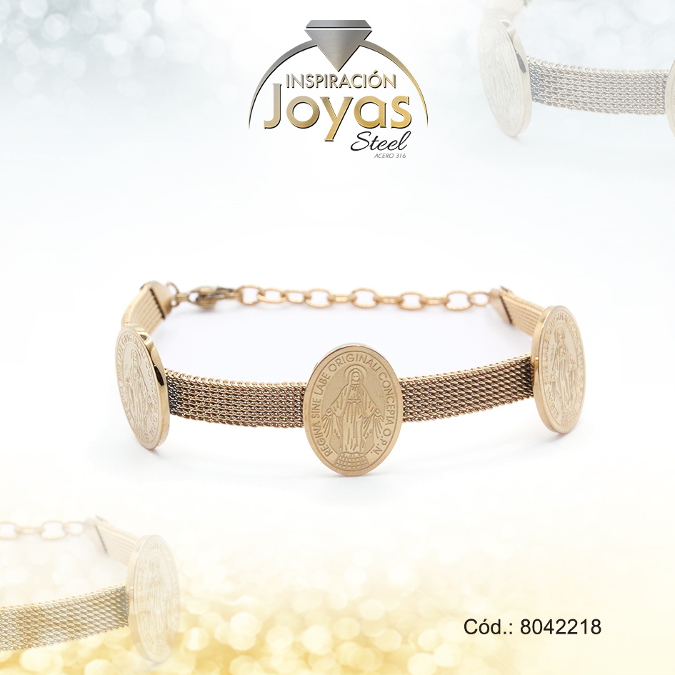 Pulsera de Acero Aleación Malla Dorado Virgen Nuestra Señora Milagrosa Medida 18 cm – 8042218
