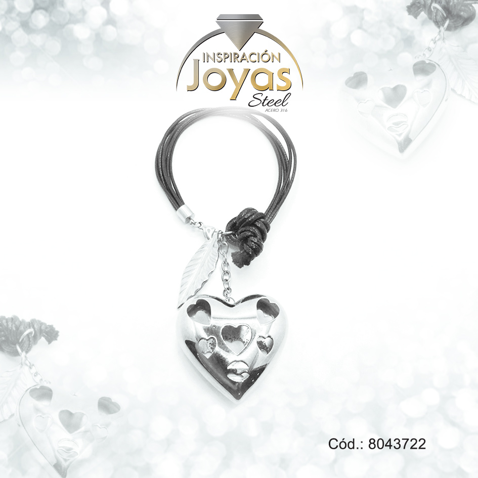 Pulsera de Acero Aleación Semi Cuero Plateado Corazón Negro Medida 22 cm – 8043722