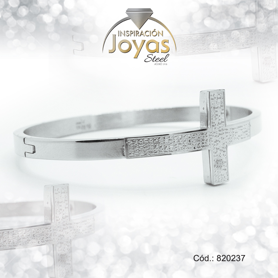 Pulsera de Acero Brazalete Plateado Cruz – 820237