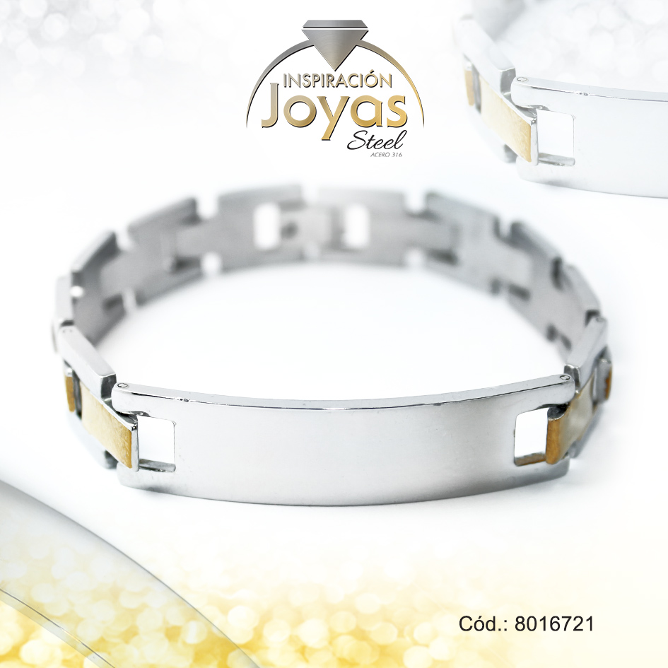 Pulsera de Acero Caballero 2 Tonos Con Placa Medida 21 cm – 8016721