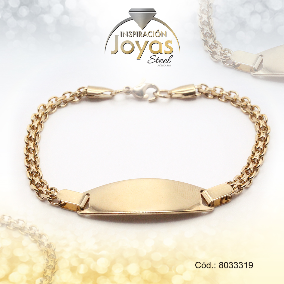 Pulsera de Acero Caballero Dorado Con Placa Medida 19 cm – 8033319