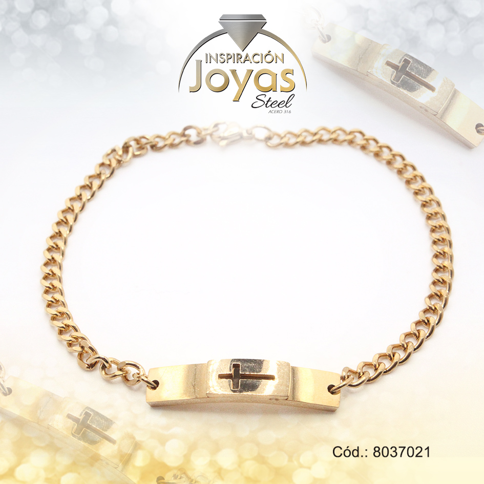 Pulsera de Acero Caballero Dorado Con Placa Medida 21 cm – 8037021