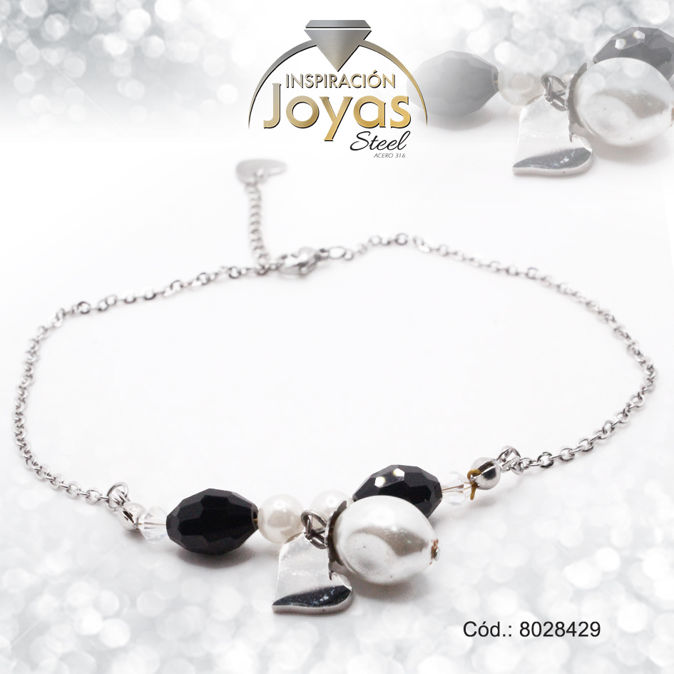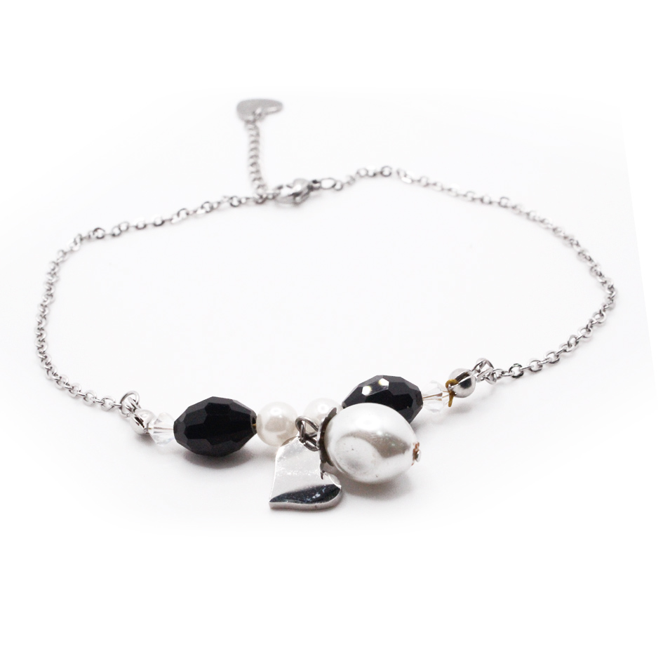 Tobillera de Acero Colgante Plateado Corazón, Esfera Blanco, Negro Medida 29 cm – 8028429