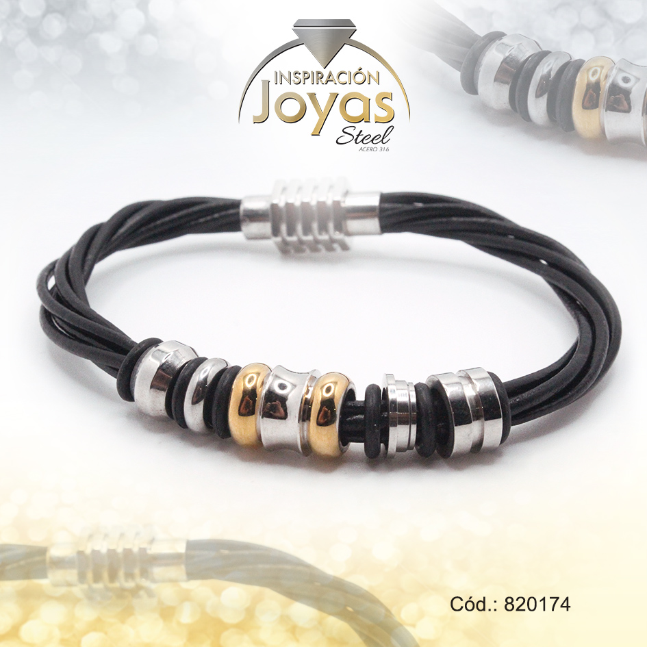 Pulsera de Acero Caballero Goma 2 Tonos Sin Placa Negro – 820174
