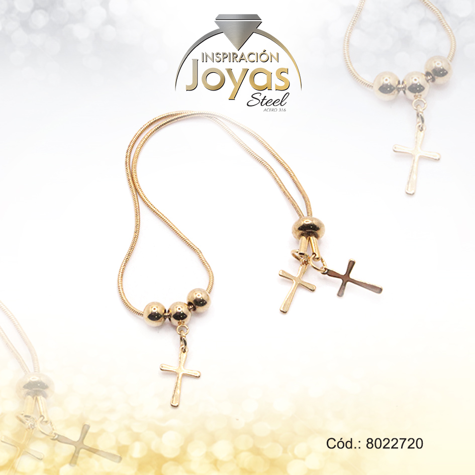 Pulsera de Acero Variado Dorado Cruz Medida 20 cm – 8022720