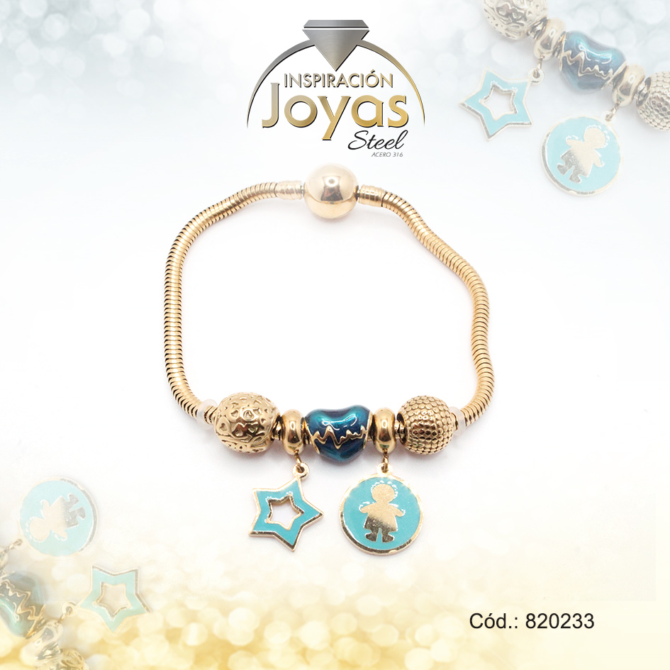 Pulsera de Acero Variado Esmalte Dorado Pandora Estrella, Niño Verde – 820233