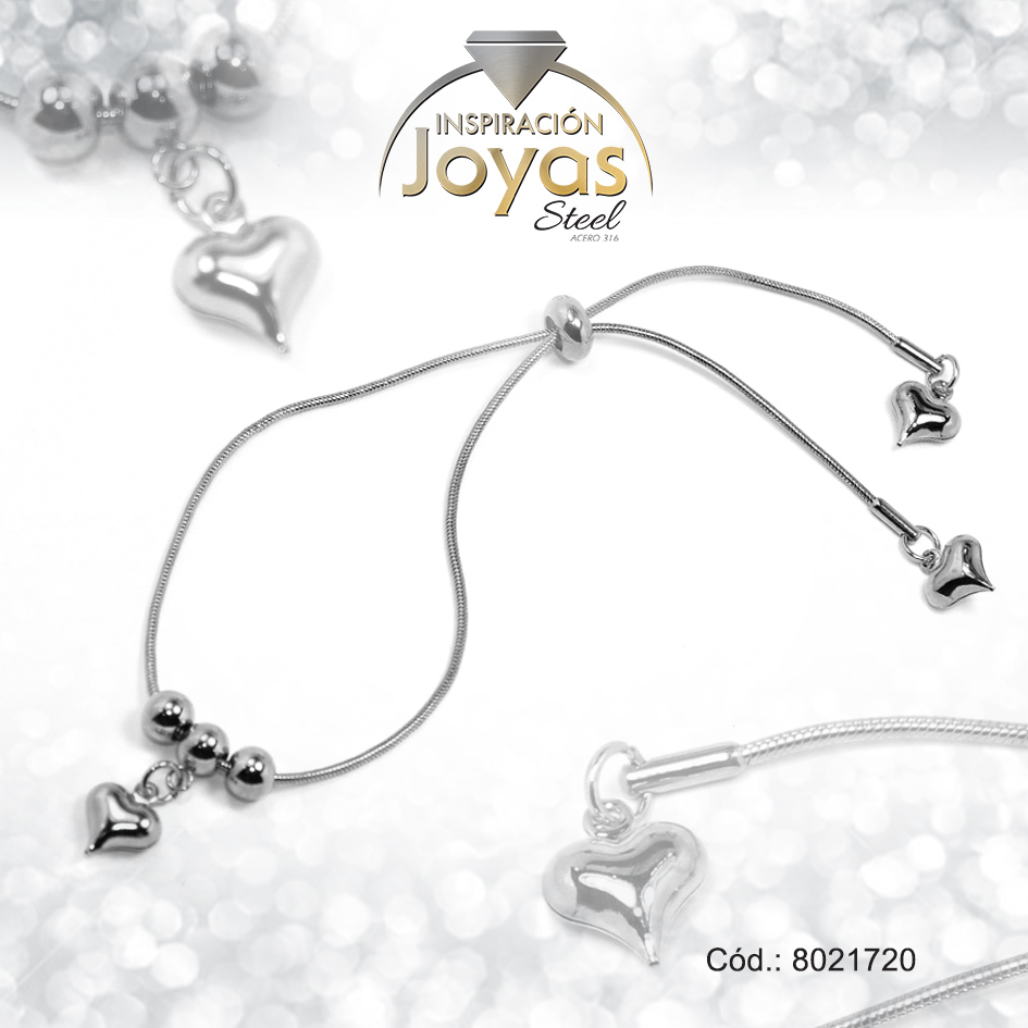 Pulsera de Acero Variado Plateado Corazón Medida 20 cm – 8021720