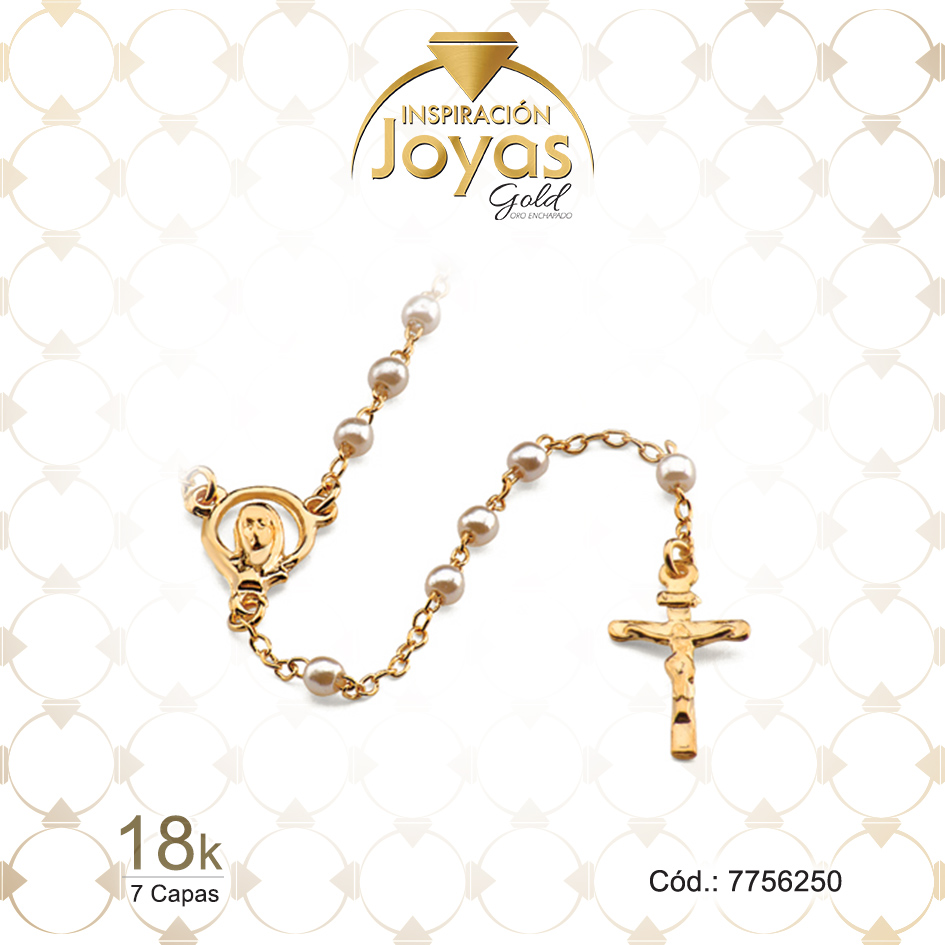 Rosario de Oro Enchapado Dorado Aleación Perla Medalla, Cruz Largo: 50 Ancho: 0,2 – 7756250