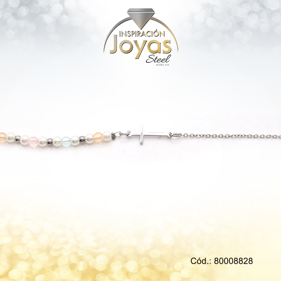 Tobillera Acero Plateado Perla/Cristal Ambar/Cruz – 80008828