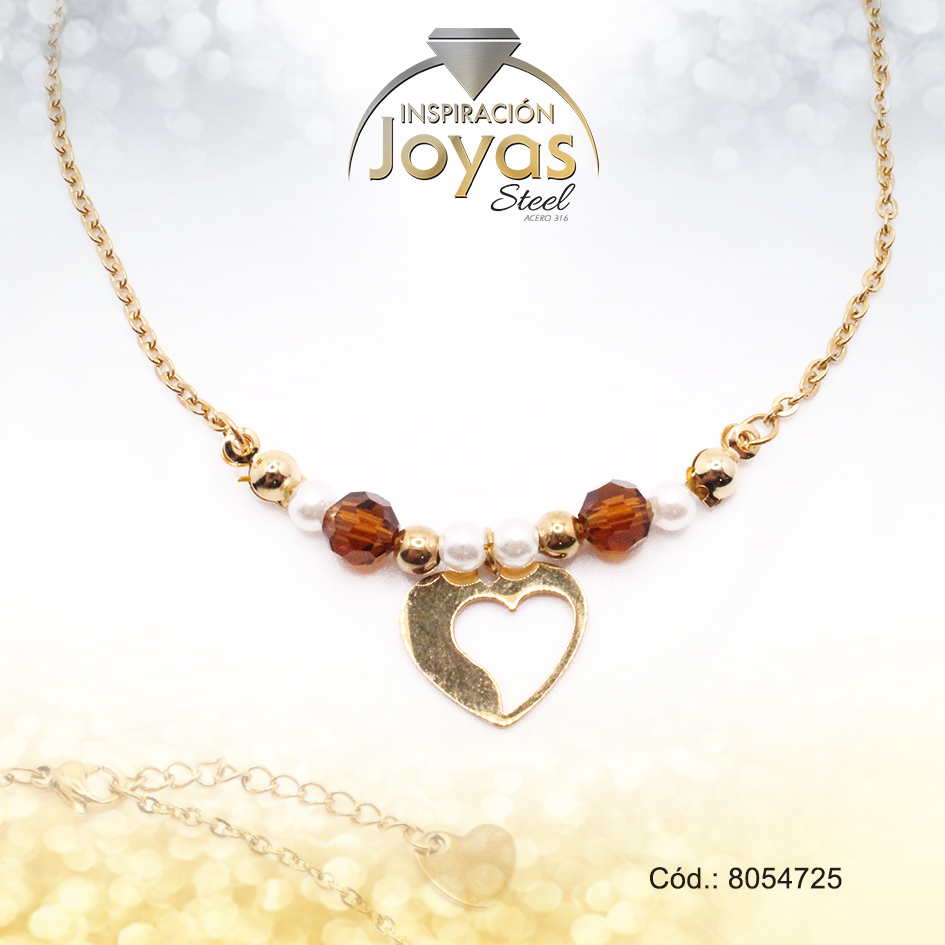 Tobillera de Acero Colgante Dorado Corazón Piedra Marrón Medida 25 cm – 8054725