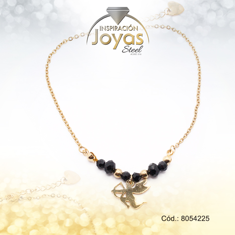 Tobillera de Acero Colgante Dorado Cúpido Piedra Negro Medida 25 cm – 8054225