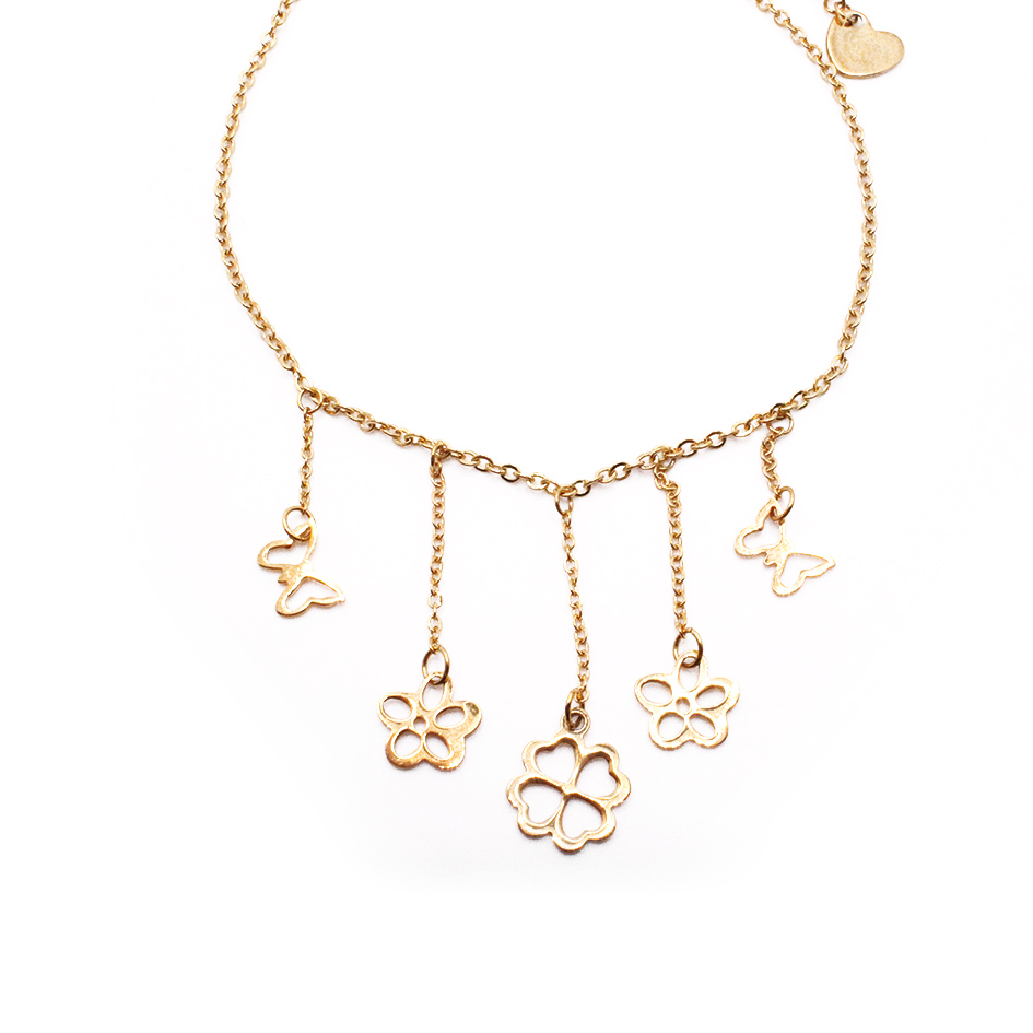 Tobillera de Acero Colgante Dorado Flor, Mariposa Medida 25 cm – 8056025
