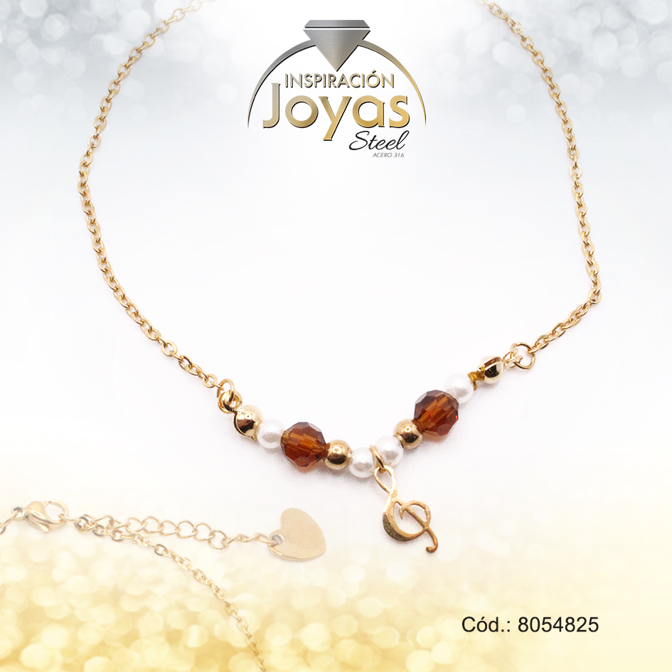 Tobillera de Acero Colgante Dorado Nota Musical Piedra Marrón Medida 25 cm – 8054825