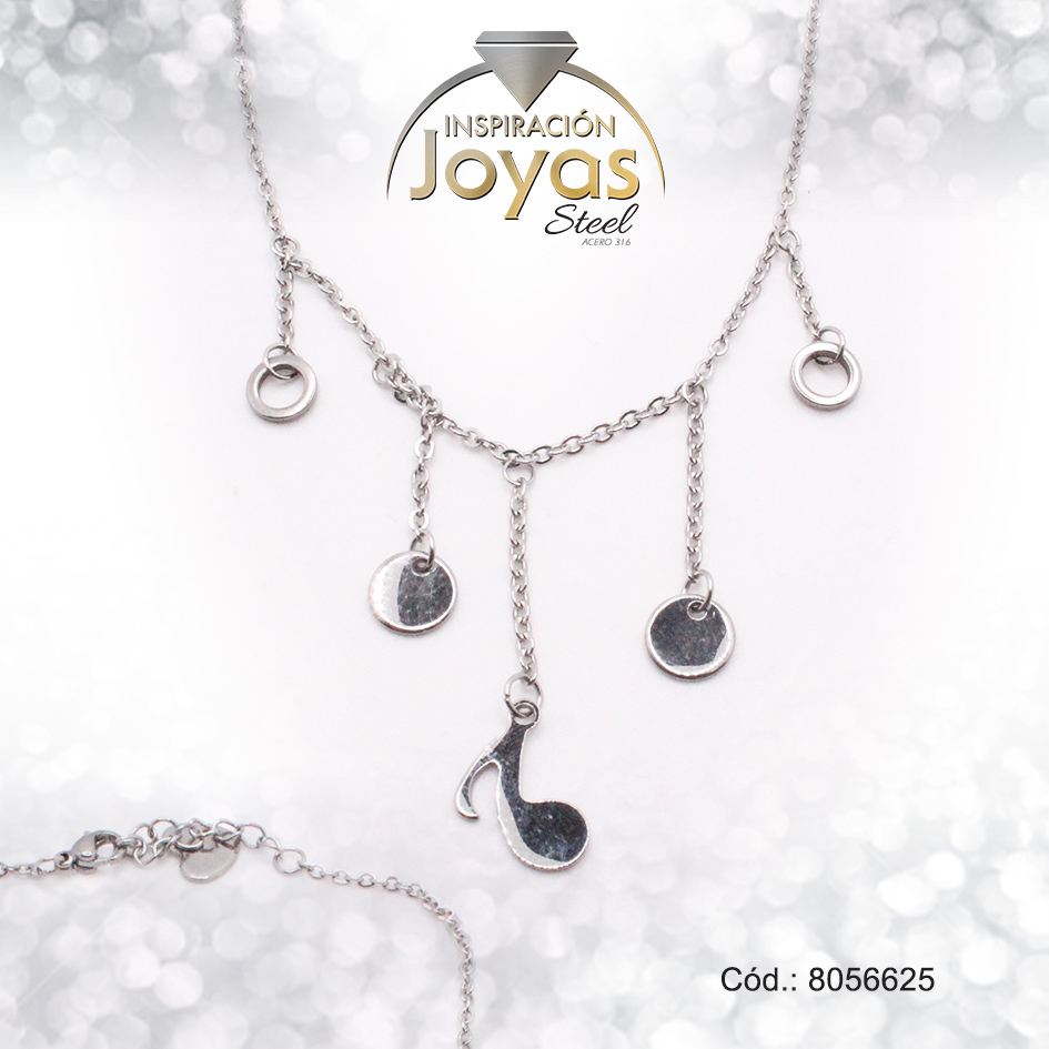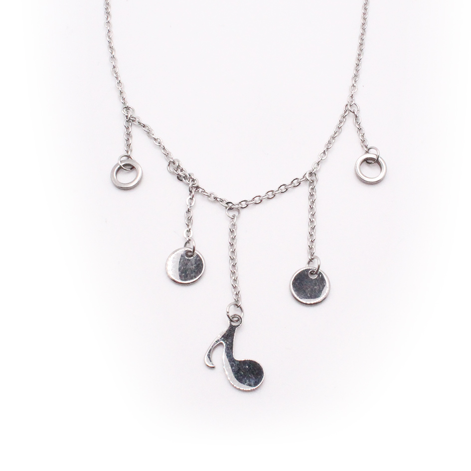 Tobillera de Acero Colgante Plateado Círculo, Nota Musical Medida 25 cm – 8056625