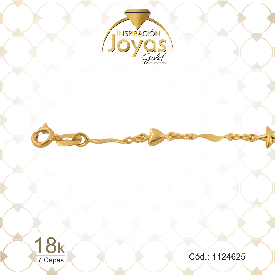 Tobillera de Oro Enchapado Dorado Lisa Corazón, Estrella Largo: 25 Ancho: 0,2 – 1124625
