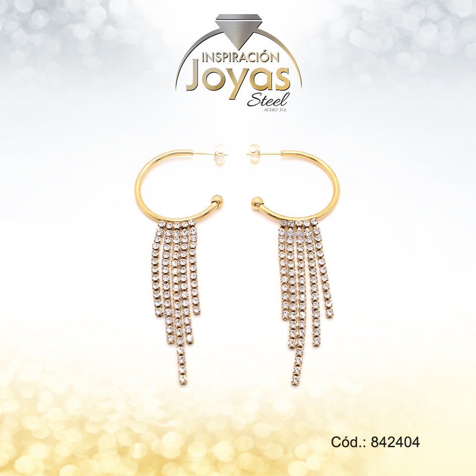 Zarcillo Acero Dorado Estilo Argolla Colgantes Lluvia De Circones – 842404