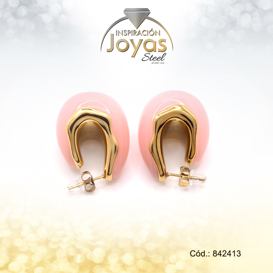 Zarcillo Acero Dorado Forma De Camaron Color Rosado – 842413