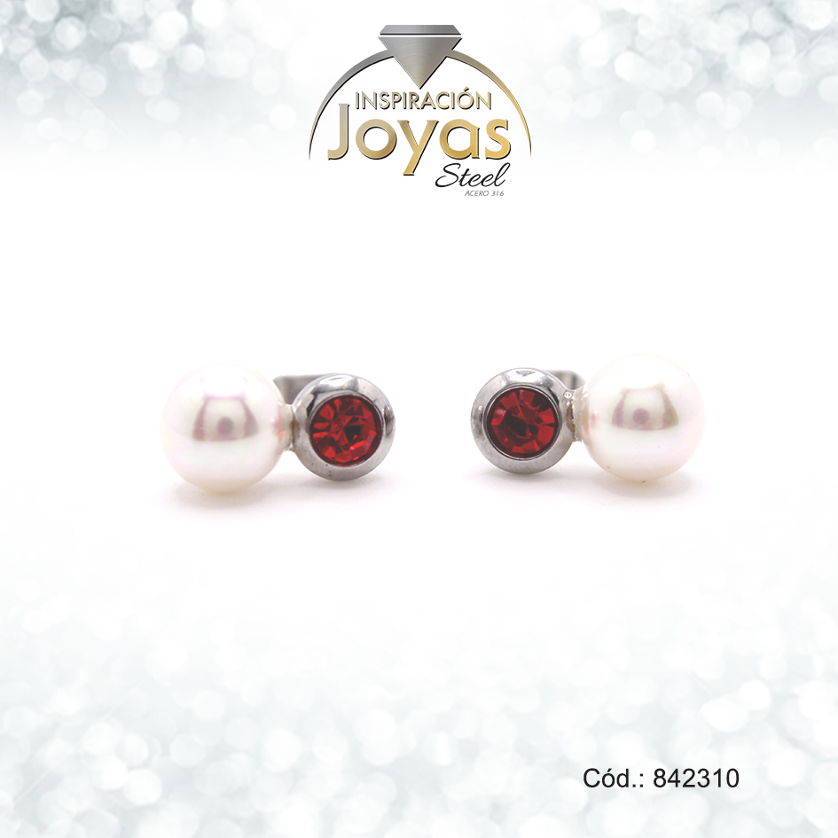 Zarcillo – Acero – Plateado – Esfera Perla/Circón Rojo/Blanco – Trancadero: Mariposa – A: 0,8Cm L: 1,3Cm – 842310