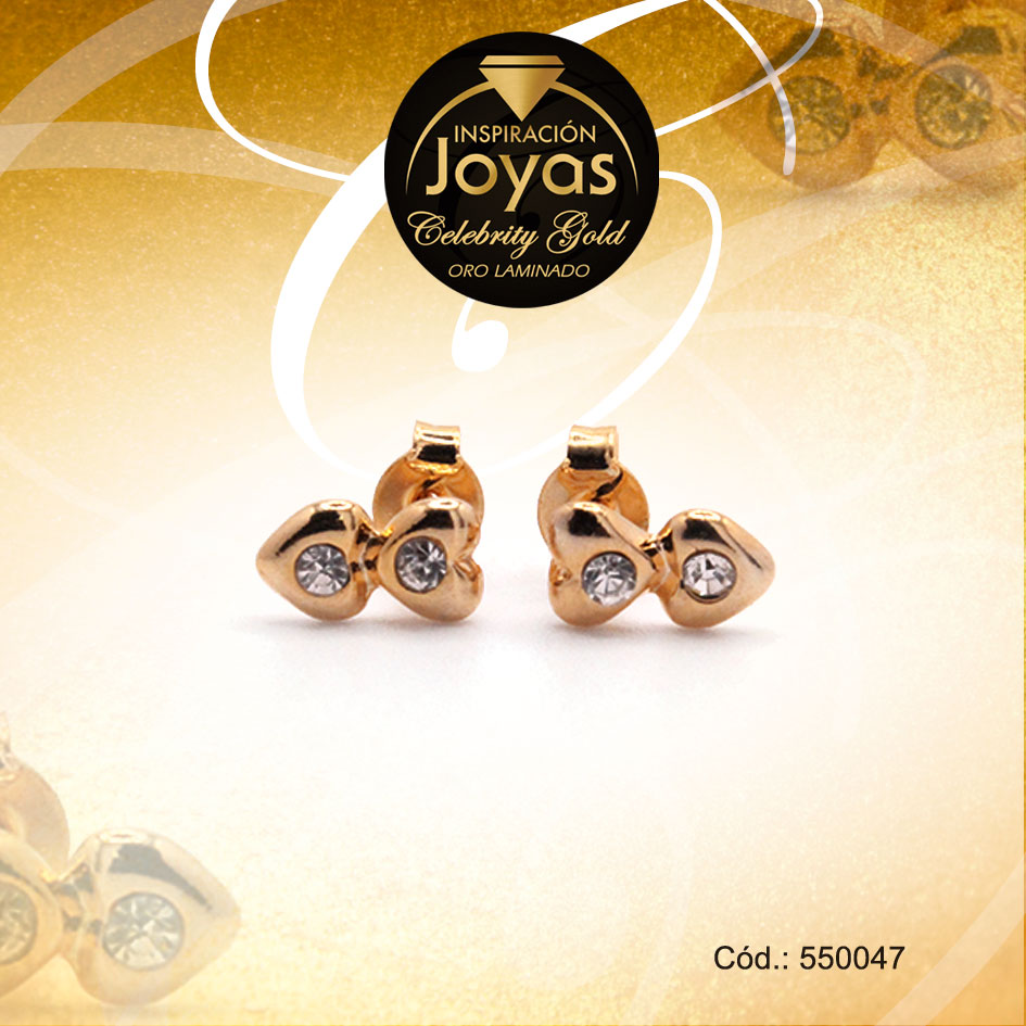 Zarcillo Celebrity Gold Tono Dorado Aleación Circón Trancadero: Mariposa A: 1 cm L: 0,3 cm Corazón Doble – 550047