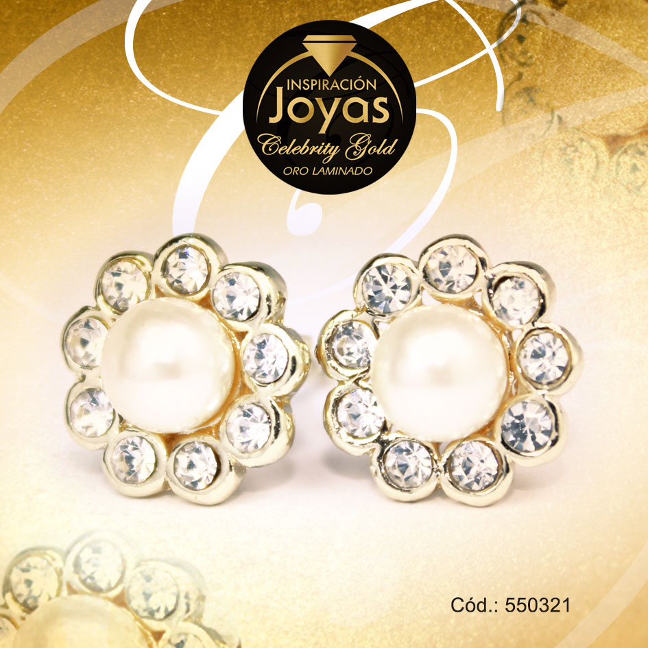 Zarcillo Celebrity Gold Tono Dorado Aleación Circón Trancadero: Mariposa A: 1,2 cm L: 1,2 cm Flor Blanco – 550321