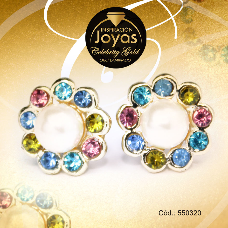 Zarcillo Celebrity Gold Tono Dorado Aleación Circón Trancadero: Mariposa A: 1,2 cm L: 1,2 cm Flor Multi Color – 550320