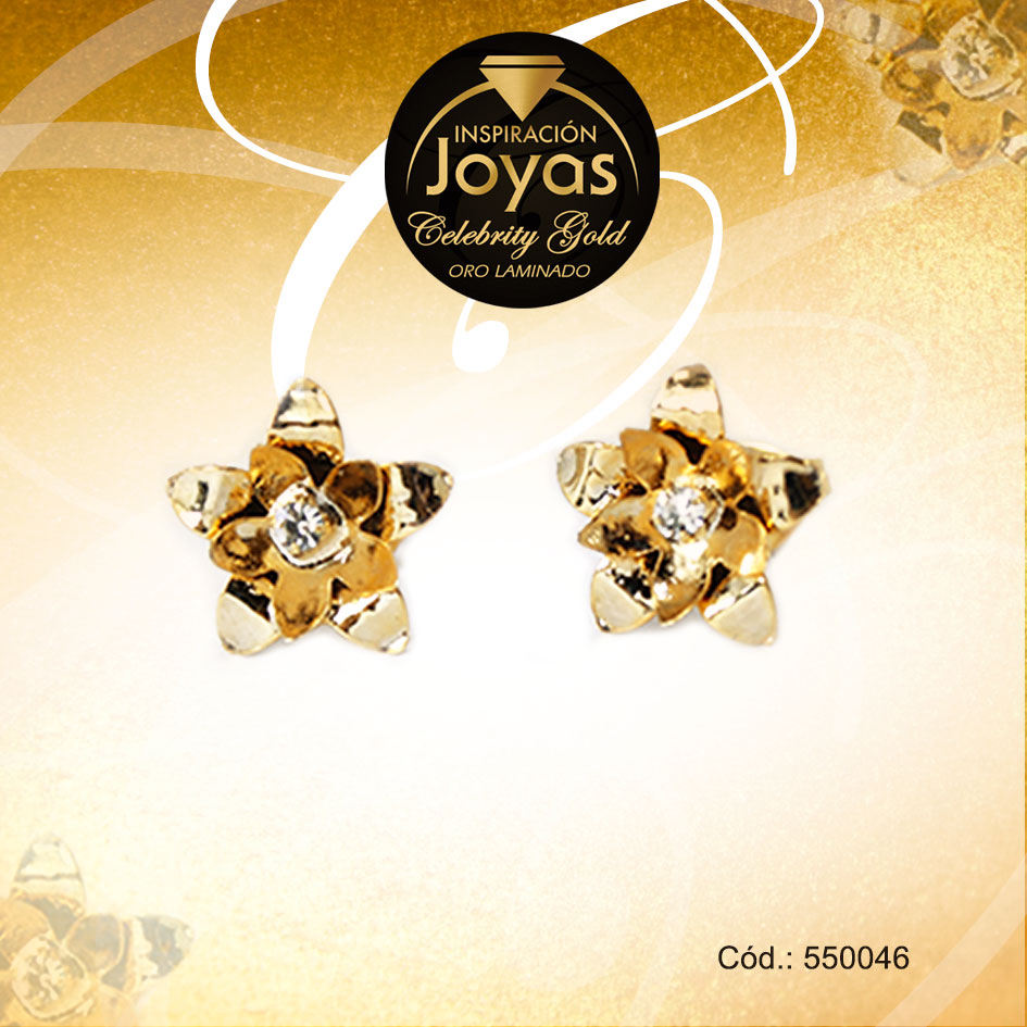 Zarcillo Celebrity Gold Tono Dorado Aleación Circón Trancadero: Mariposa A: 1,4 cm L: 1,4 cm Flor – 550046