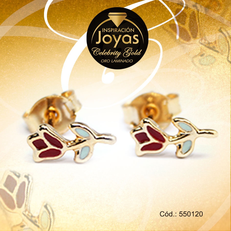 Zarcillo Celebrity Gold Tono Dorado Aleación Esmalte Trancadero: Mariposa A: 0,4 cm L: 0,9 cm Tulipán Blanco y Rojo – 550120