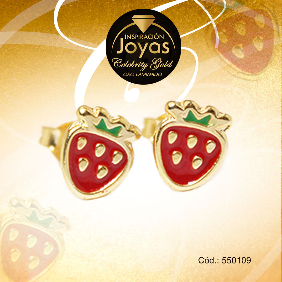 Zarcillo Celebrity Gold Tono Dorado Aleación Esmalte Trancadero: Mariposa A: 0,6 cm L: 0,6 cm Fresa Rojo – 550109