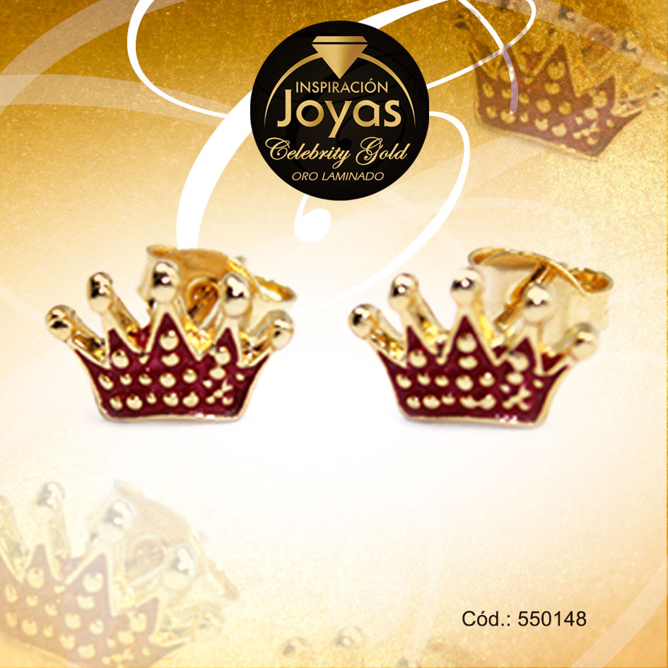 Zarcillo Celebrity Gold Tono Dorado Aleación Esmalte Trancadero: Mariposa A: 0,7 cm L: 0,7 cm Corona Vinotinto – 550148