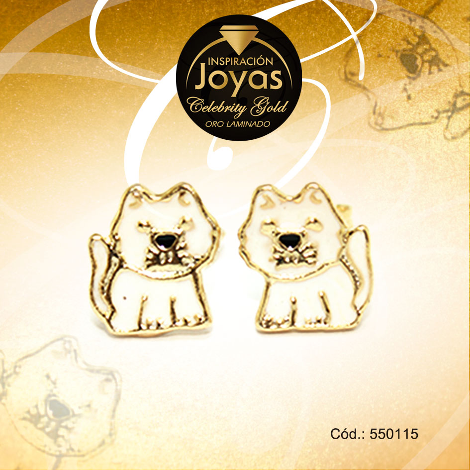 Zarcillo Celebrity Gold Tono Dorado Aleación Esmalte Trancadero: Mariposa A: 0,7 cm L: 0,7 cm Gato Blanco – 550115
