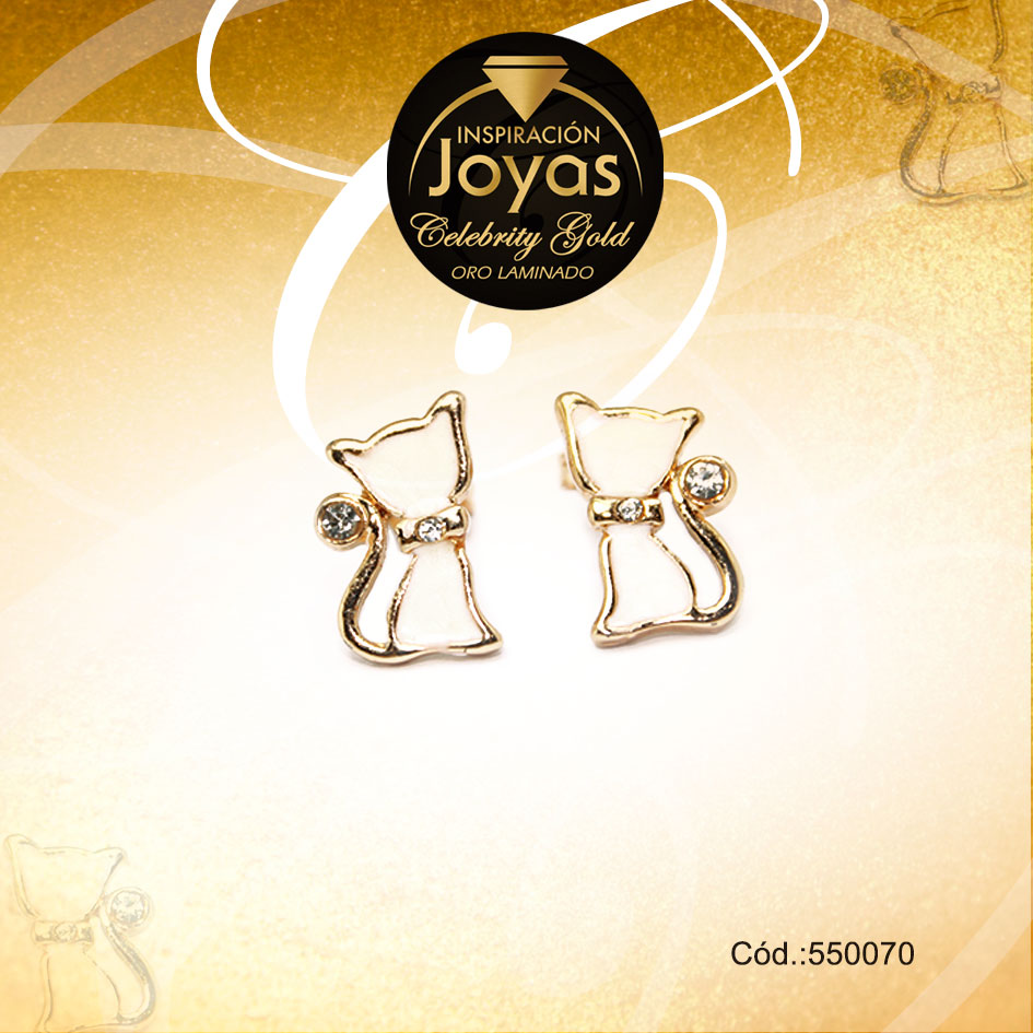 Zarcillo Celebrity Gold Tono Dorado Aleación Esmalte Trancadero: Mariposa A: 0,8 cm L: 1,2 cm Gato Blanco – 550070