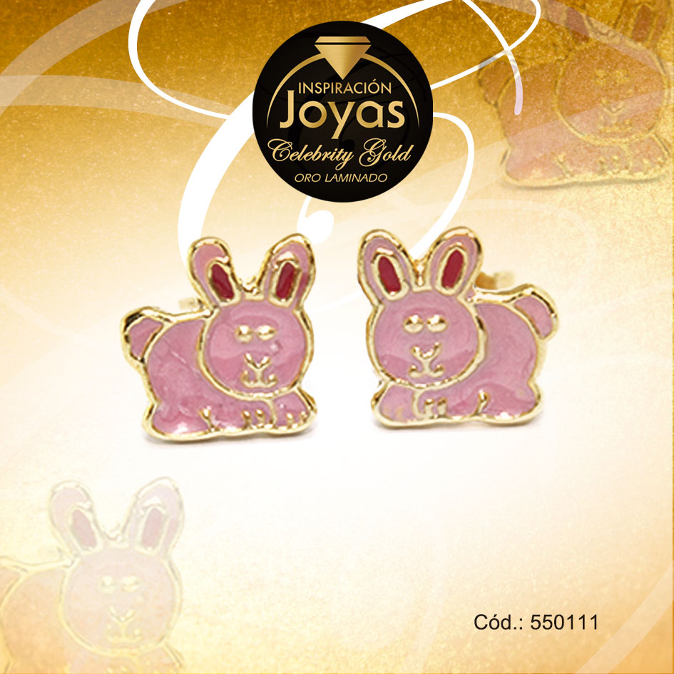 Zarcillo Celebrity Gold Tono Dorado Aleación Esmalte Trancadero: Mariposa A: 0,9 cm L: 0,8 cm Conejo Rosado – 550111