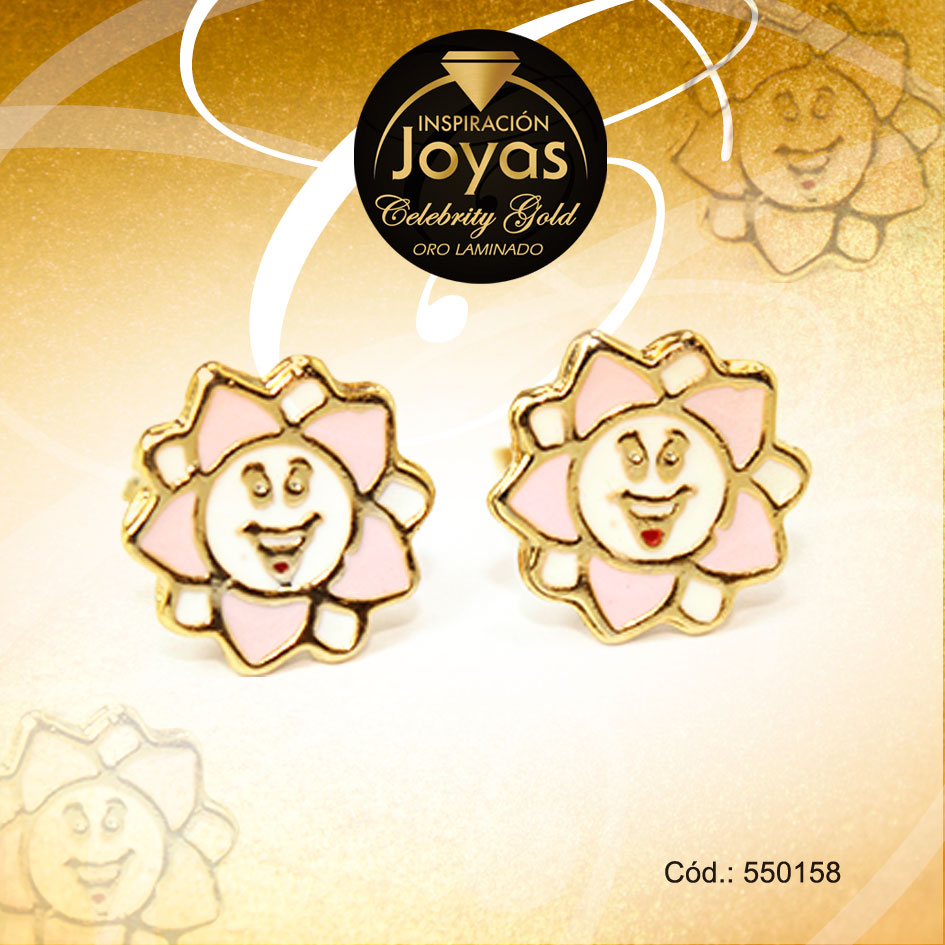 Zarcillo Celebrity Gold Tono Dorado Aleación Esmalte Trancadero: Mariposa A: 0,9 cm L: 0,9 cm Sol Blanco y Rosado – 550158