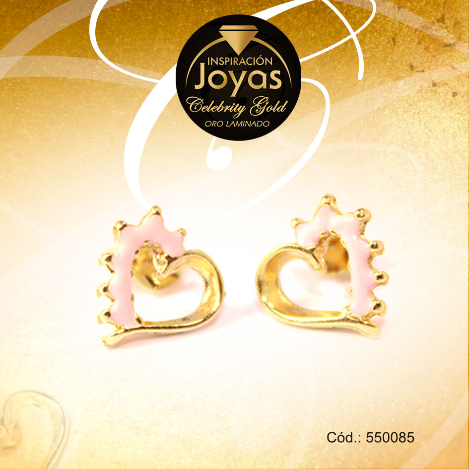 Zarcillo Celebrity Gold Tono Dorado Aleación Esmalte Trancadero: Mariposa A: 1 cm L: 0,9 cm Corazón Rosado – 550085