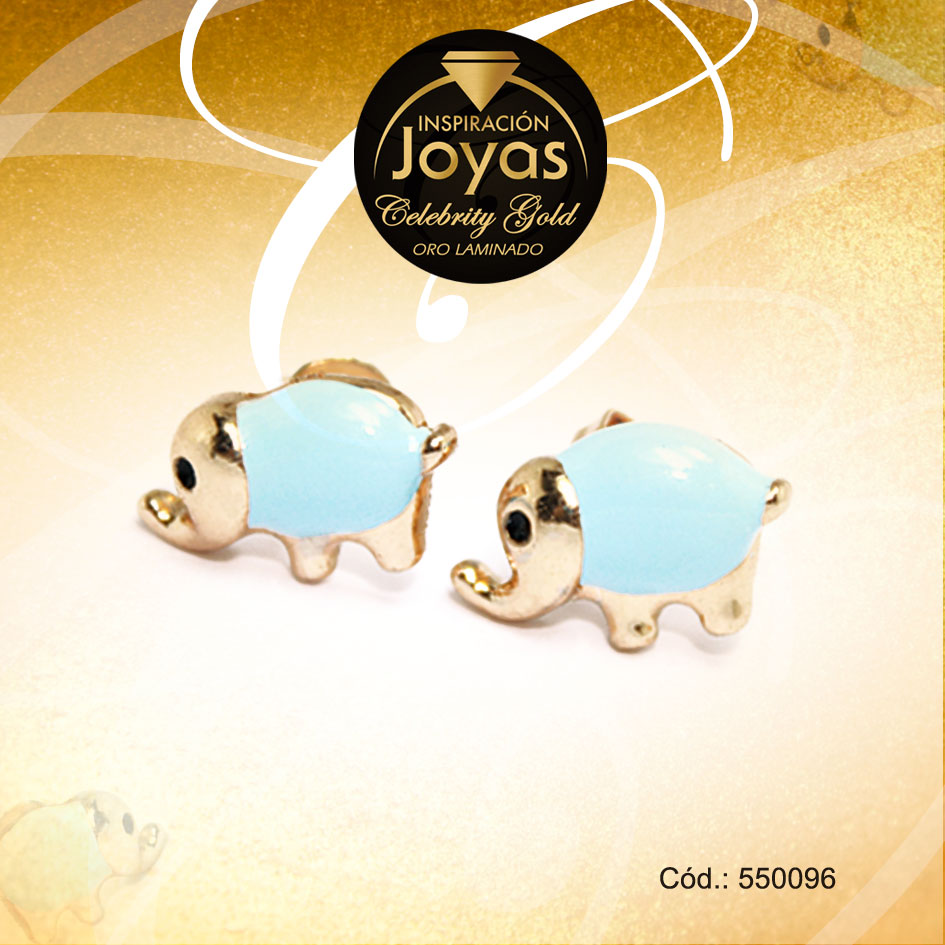 Zarcillo Celebrity Gold Tono Dorado Aleación Esmalte Trancadero: Mariposa A: 1 cm L: 1 cm Elefante Azul – 550096