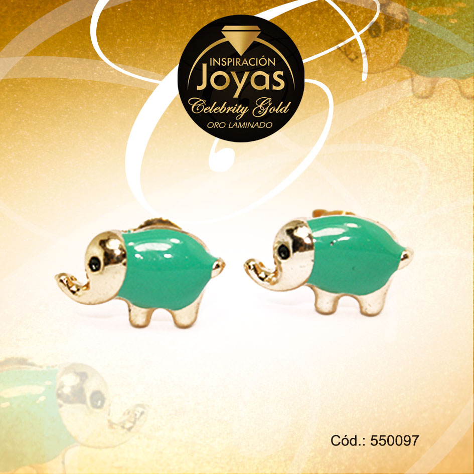 Zarcillo Celebrity Gold Tono Dorado Aleación Esmalte Trancadero: Mariposa A: 1 cm L: 1 cm Elefante Verde – 550097