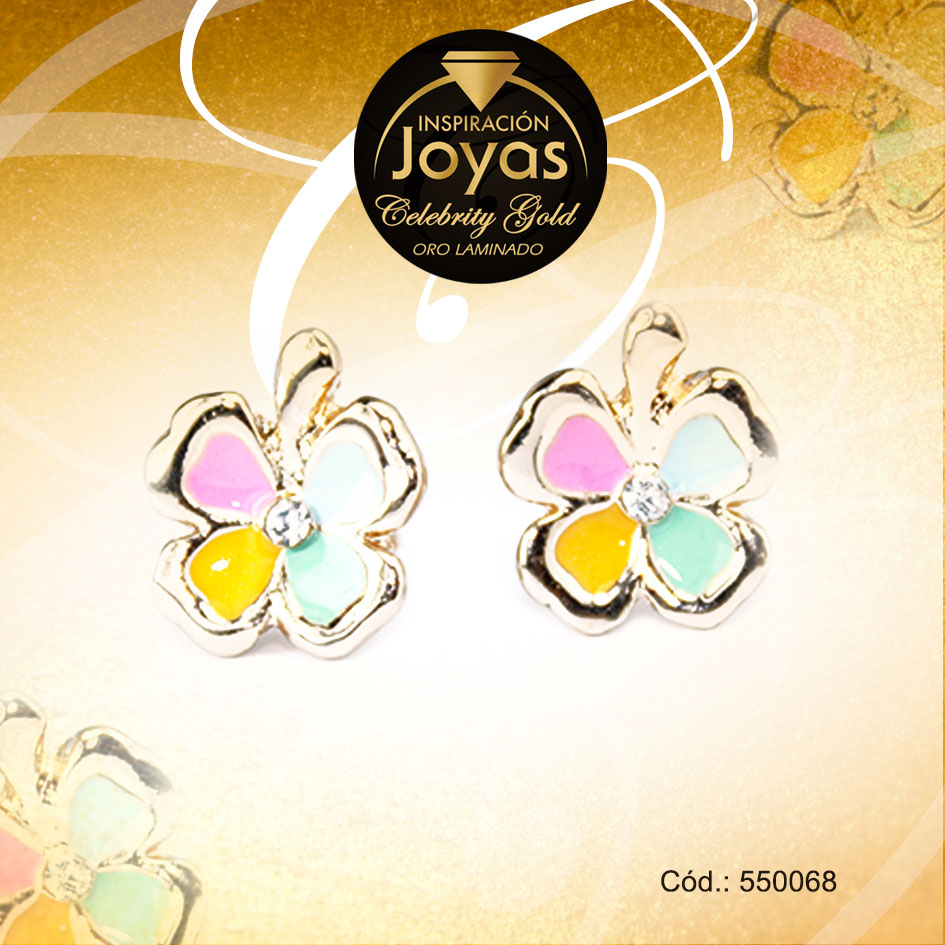 Zarcillo Celebrity Gold Tono Dorado Aleación Esmalte Trancadero: Mariposa A: 1 cm L: 1,3 cm Trébol Multi Color – 550068