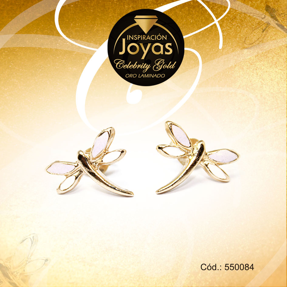 Zarcillo Celebrity Gold Tono Dorado Aleación Esmalte Trancadero: Mariposa A: 1,1 cm L: 1 cm Libélula Blanco – 550084