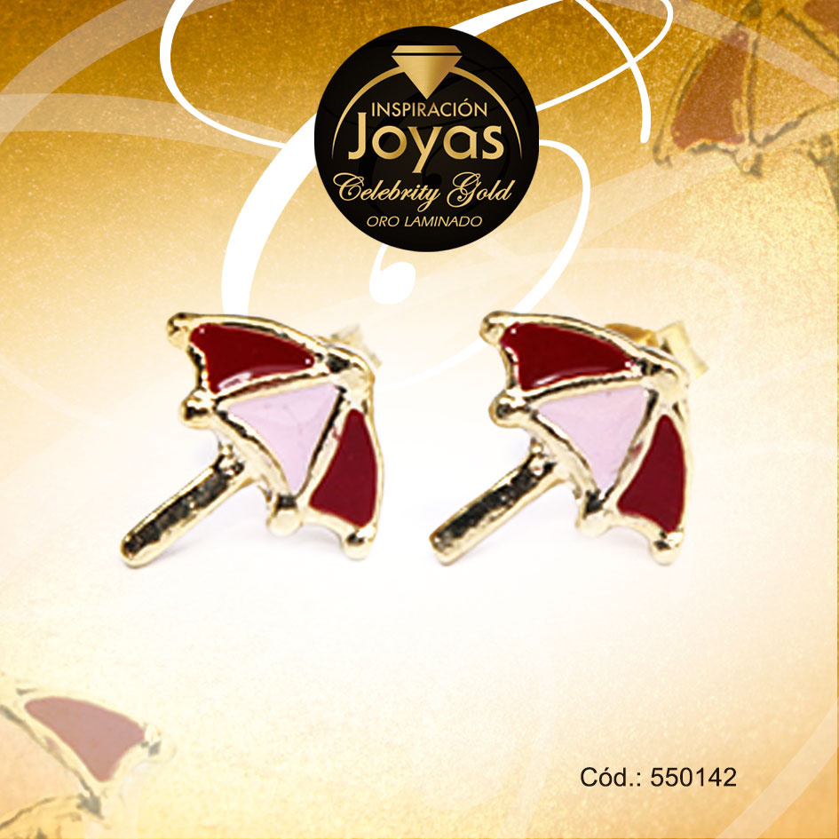 Zarcillo Celebrity Gold Tono Dorado Aleación Esmalte Trancadero: Mariposa A: 1,1 cm L: 1 cm Paraguas Rojo y Rosado – 550142