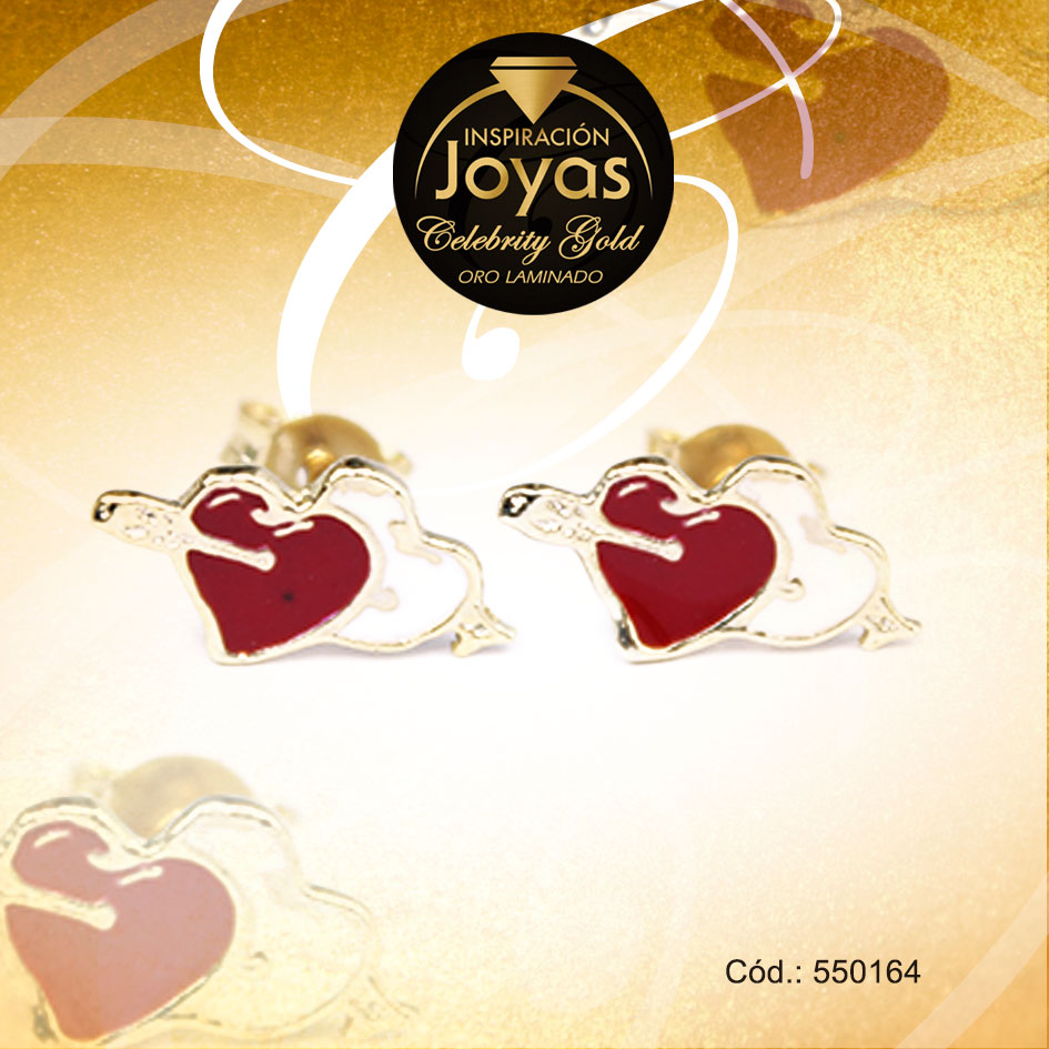 Zarcillo Celebrity Gold Tono Dorado Aleación Esmalte Trancadero: Mariposa A: 1,2 cm L: 0,6 cm Corazón Doble Rojo y Blanco – 550164